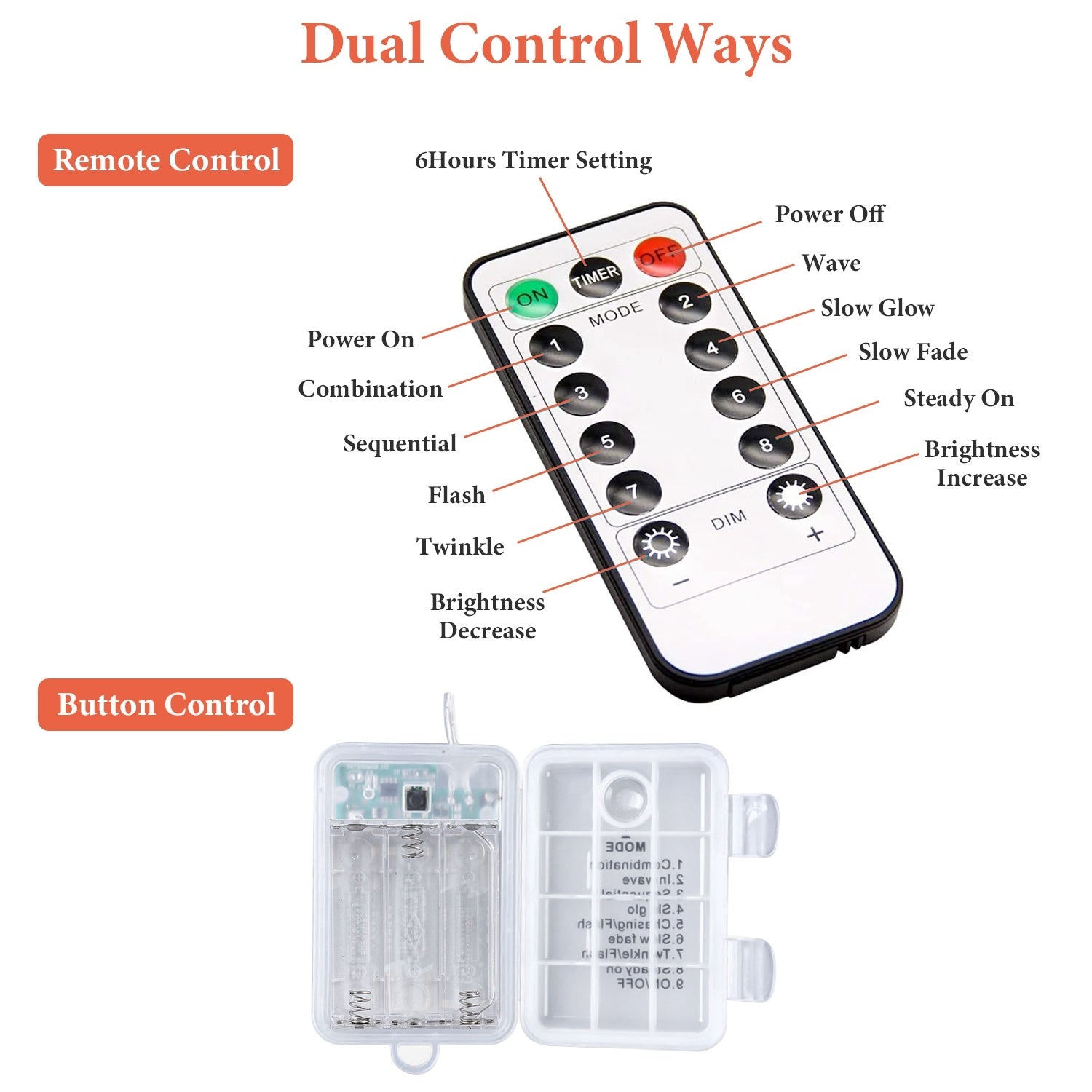 - Lighting Modes: 8 Modes – Combination, Wave, Sequential, Slow Glow, Flash, Slow Fade, Twinkle, Steady On