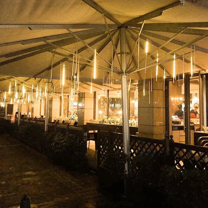 Enhance your outdoor space with LED Meteor Shower Lights, designed for a stunning rainfall effect. These waterproof outdoor LED lights are perfect for decorating trees, gardens, patios, and festive occasions.