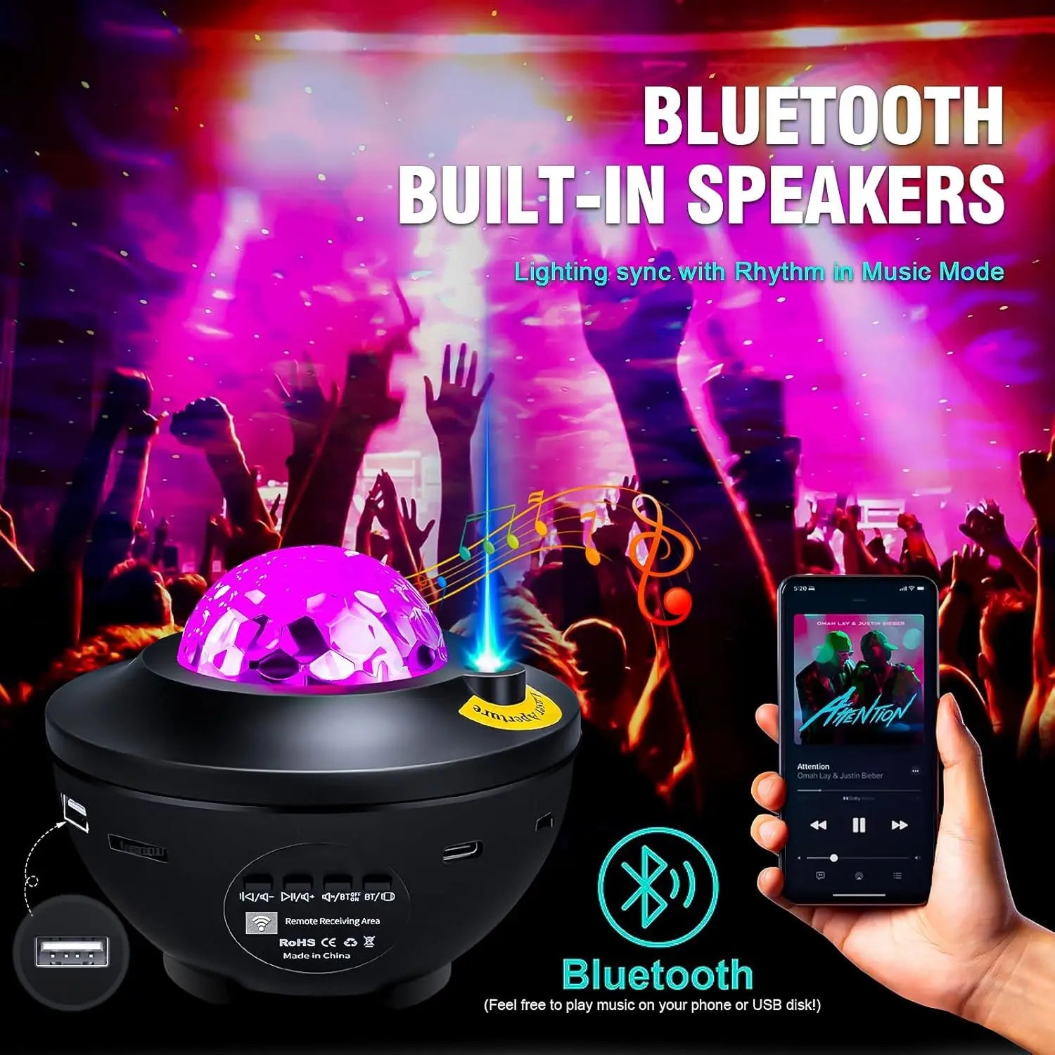 Transform any space into a dreamy galaxy with our LED Starry Sky Projector featuring 15 water ripple effects + green laser stars for an immersive light show. Perfect for bedrooms, parties, relaxation, or a romantic ambiance!
