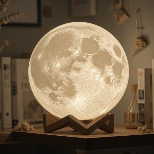 Designed with advanced 3D printing technology, this rechargeable color changing moon lamp captures the beauty of the lunar surface with its realistic crater details. Tap or touch to switch between soft white, warm yellow, and cozy warm light, adjusting brightness with a long press. Perfect for creating a calm and dreamy ambiance, whether as a nightlight, decorative piece, or a thoughtful gift.